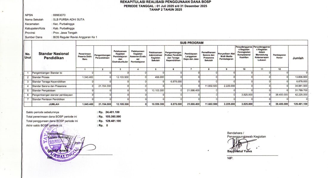 LAPORAN REKAPITULASI REALISASI PENGGUNAAN DANA BOS REGULER TAHAP 2 TAHUN 2025